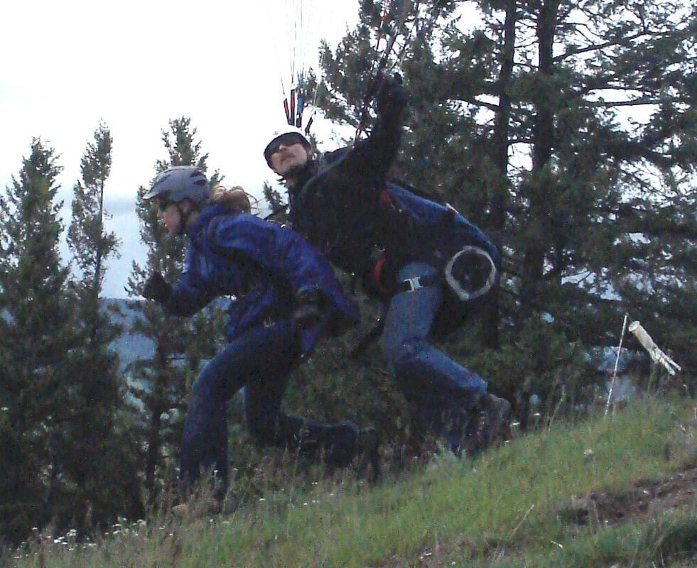 You and your instructor will be together in a chair-like harness. You will be with your pilot/instructor the entire time.After a few running steps, you can expect to be floating blissfully in the air away from the take-off point.Once you are in the air, you will be able to sit back in their harness as if sitting in a chair. Enjoy the amazing views while your instructor is seated right behind you controlling the paragliding wing above. Flight times vary based upon conditions and durations cannot be guaranteed.When heading down to land, you can expect to slowly descend toward our large, grassy landing field. Your instructor will be guiding you the whole way on the landing process. As a passenger, you simply need to lift your legs up when instructed to slowly slide in while remaining seated in your harness. Surprisingly easy!